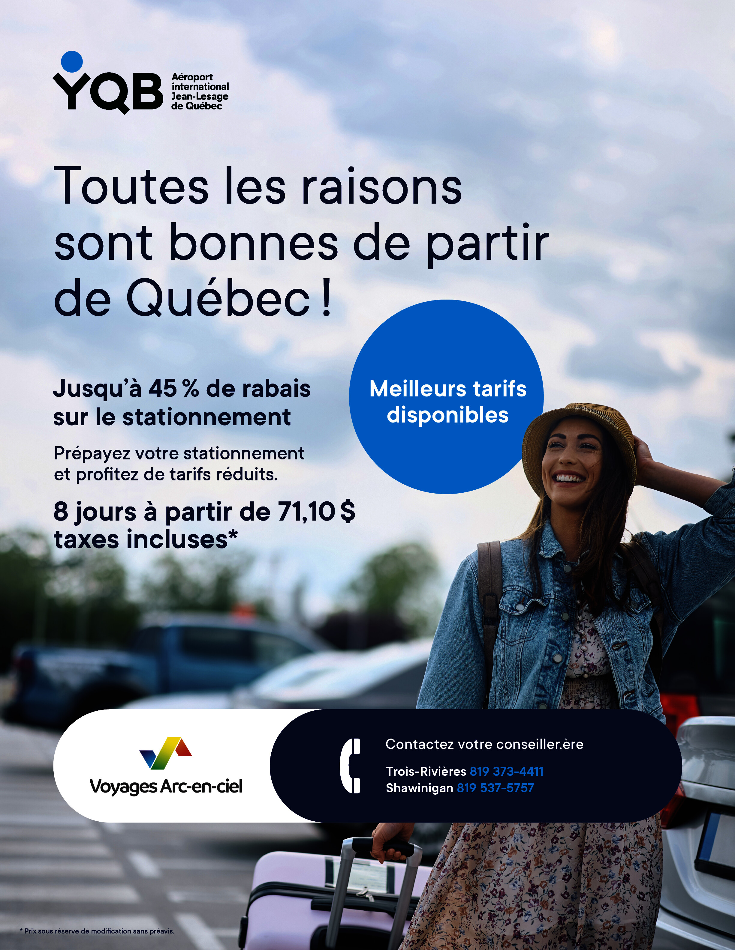 Tarif préférentiel pour le stationnement à YQB (Aéroport international de Qc).