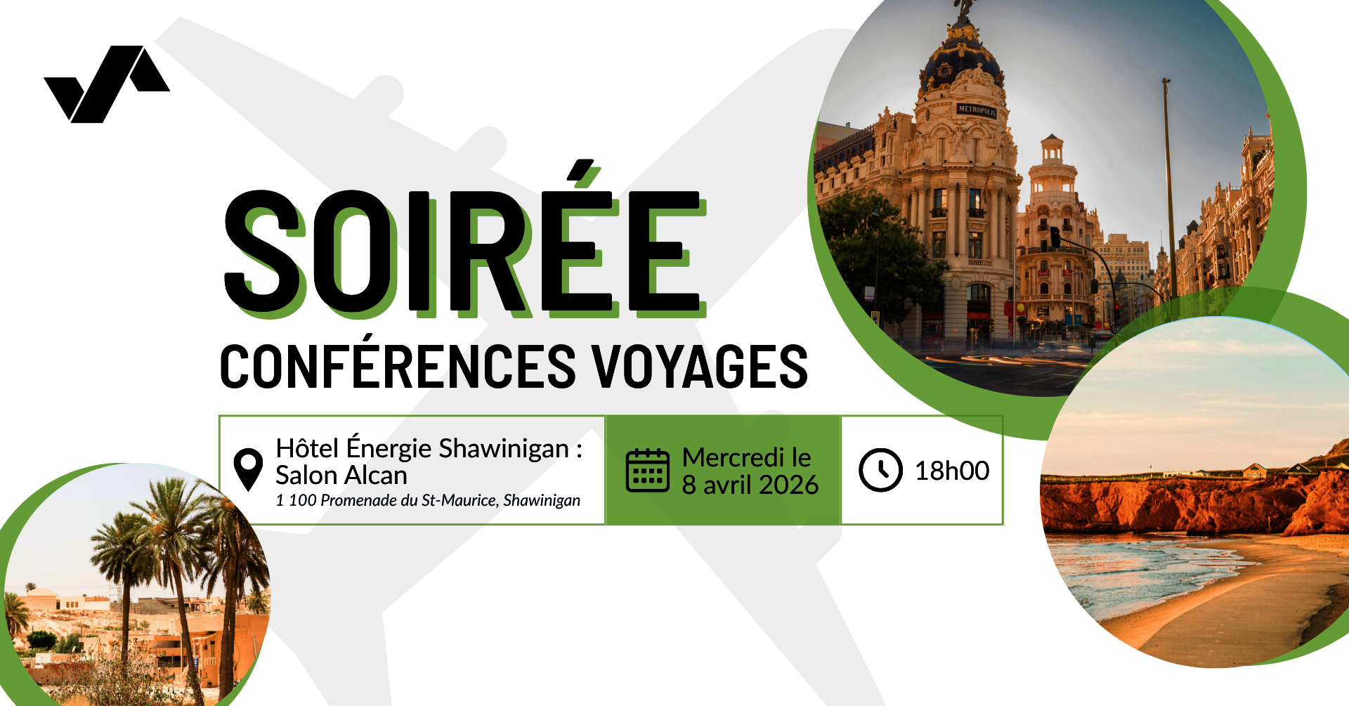 Joignez-vous à nous pour une soirée conférences à Shawinigan et venez découvrir nos plus beaux circuits en Europe, en Afrique et au Canada.